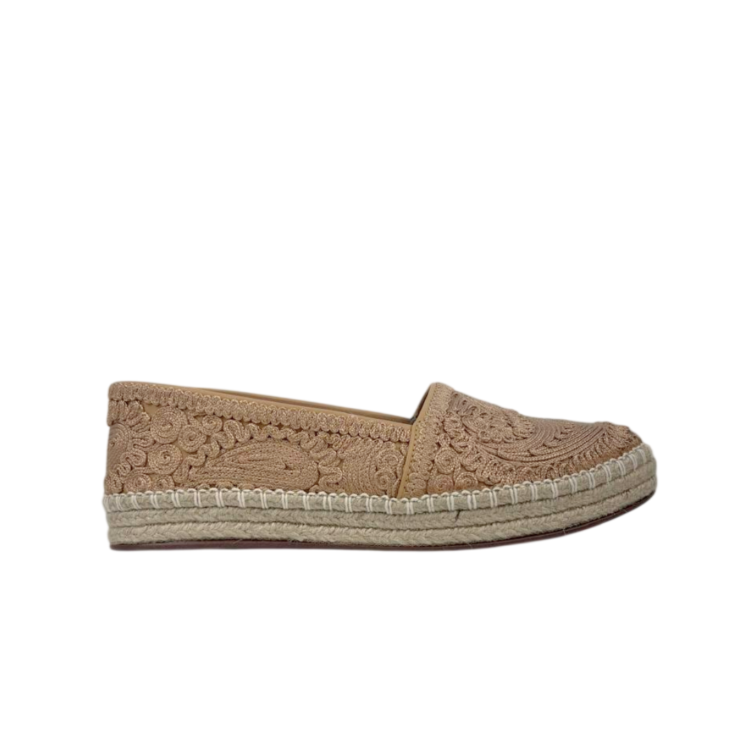 Alpargata com acabamento bordado rico em detalhes, que une delicadeza artesanal e sofisticação. Confeccionada em material de toque macio, o modelo apresenta bordados elaborados em relevo, criando um visual elegante e diferenciado.