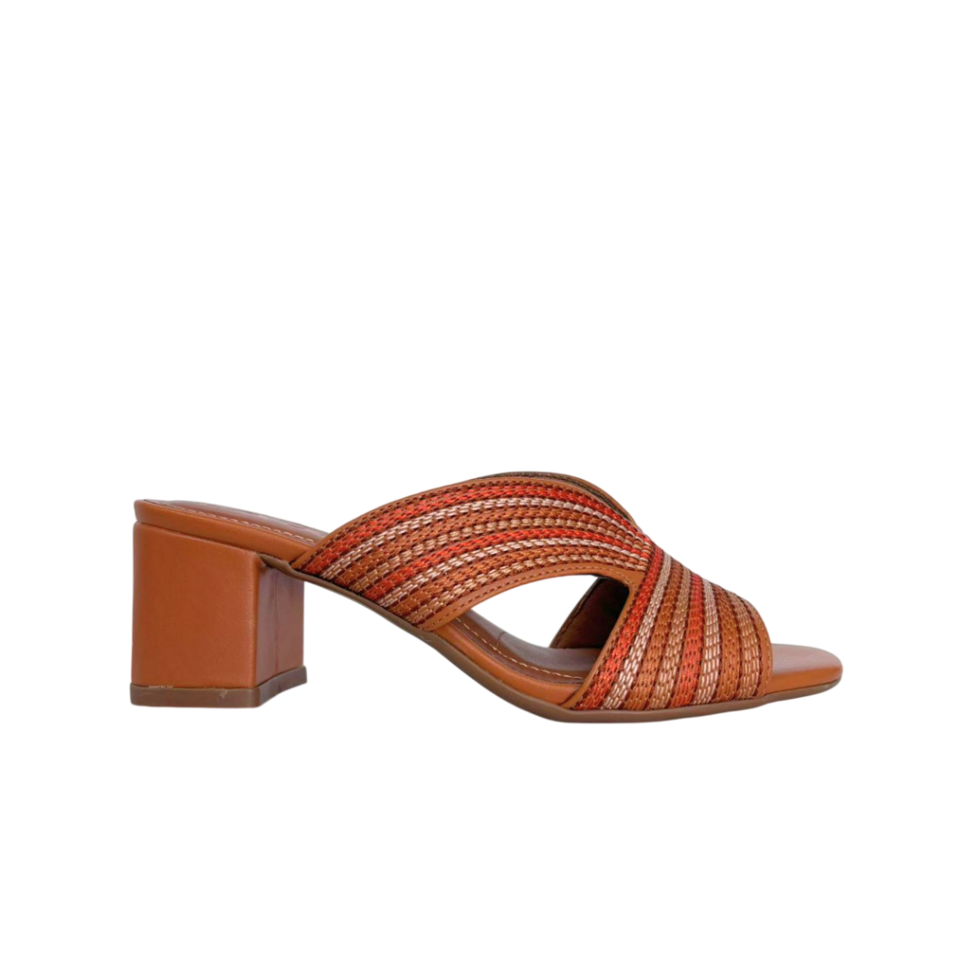 O tamanco Trama Terrosa une conforto e estilo em um design sofisticado e cheio de personalidade. Com salto bloco médio, ele garante estabilidade e bem-estar para o uso diário. A tira larga em trama multicolorida, em tons quentes e terrosos, traz textura e um visual artesanal moderno, valorizando qualquer produção.